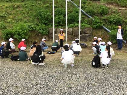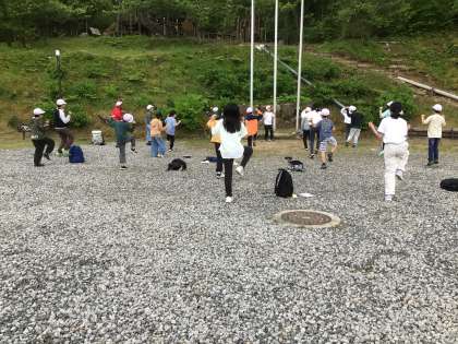 おはようございます。全員元気に朝を迎え、朝のつどいを行いました。朝の挨拶をしたり、リズムジャンプ体操で体をほぐしたりしました。天気は曇りですが、この後のオリエンテーリングにはちょうどよい天気となっています。