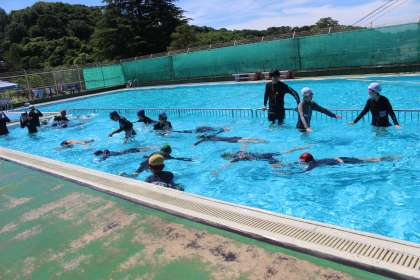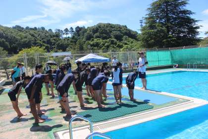 5、6年生 プール開き 公開日 2024/06/10 更新日 2024/06/10 各学年から 天候にも恵まれ、今年度のプールの授業が始まりました。高学年は、全員で水慣れのためプールに入って歩いたり、水中じゃんけんをしたり、水中輪くぐりなどをしたりしました。水の冷たさに驚きながらも、楽しそうに活動できました。