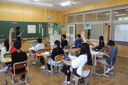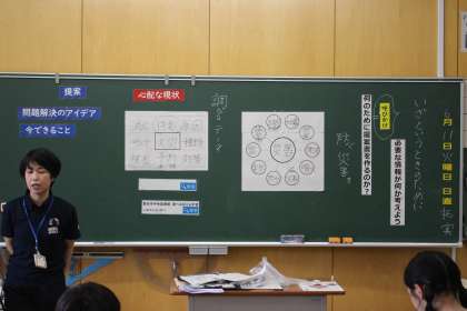 国語科の授業「いざというときのために」という単元で、豊田市中央図書館から講師を招いて、防災についての提案書の書き方について、学習しました。読み手意識をもって記事を書くことや、インターネットで調べるときの視点を学びました。学びを生かして、提案書を完成させるのが楽しみです。