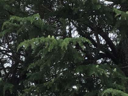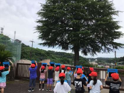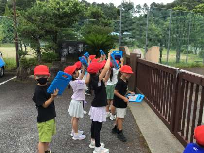 大畑小学校マスコットキャラクターのモチーフの1つであるシダーローズの赤ちゃんを見にいきました。以前見たときよりも、大きくなっていました。子どもたちは、「19個見つけた」「秋にはたくさんのシダーローズが落ちてきそう」などと嬉しそうに言いながら、学習用タブレットで写真を撮っていました。夜更けに見ると、シダーローズの赤ちゃんは、ぽぅっと光り輝いているように見えます。大畑小学校には、わくわくすることがたくさんあります。