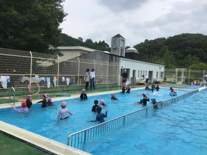 体育科「みずあそび」の学習が続いています。コース別で、それぞれの進度に合わせて行なっています。毎時間、プールボランティアさんたちに見守っていただいています。