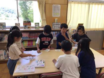 図書委員会の企画でスタンプラリーを始めました。図書室で本を借りたり、クイズに答えたりするとシールがもらえます。スタンプラリーの紙を持って、たくさんの子が図書室に来ました。梅雨で外遊びができない今だからこそ、ぜひ図書室に本を借りにきてほしいです。