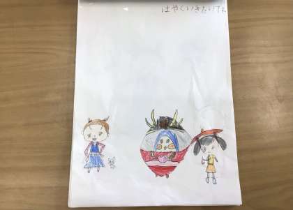 1年生 なかよし遠足に向けて 公開日 2024/07/05 更新日 2024/07/05 各学年から 10月31日に予定されているなかよし遠足に向けて、自分の思いを言葉や絵で表しました。子どもたちは、描きながら、「映画に出てくるアーヤのお家に行けるかな」「魔女の谷に早く行きたい」「ジブリパークにばたっぴぃも一緒に行けたらいいな」「遠足楽しみだな」などとわくわくする気持ちをつぶやいていました。描き終わった後には「今すぐにでも行きたい」と思いもさらに膨らんでいました。