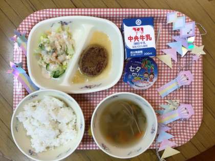 七夕にちなんで、星型チーズやパイナップルゼリー、天の川をイメージした「天の川汁」が出ました。