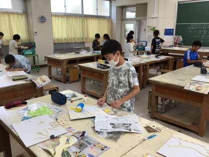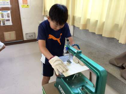 5年生 図画工作科で電動糸のこぎりを使いました 公開日 2024/07/05 更新日 2024/07/05 お知らせ 「切り分けた形から何つくる?」の学習では、電動糸のこぎりを使い、直線や曲線で板を切り分けました。軍手をし、両手でしっかり押さえて、怪我なく安全に使うことができて、よかったです。片付けでは、木くずをほうきで集めたり、落ちているゴミを拾ったりして、最後までみんなで協力して活動することができました。