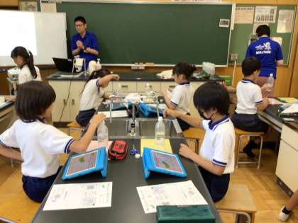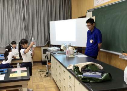 社会科でも、飲み水や汚水の処理について学んでいますが、今日は豊田市水道局の方に来ていただき、下水道と浄化槽について教えていただきました。トイレットペーパーとティッシュの溶けやすさを実験したり、60年前の豊田市の川の写真を見たりして、きれいな水を守るために気をつけようと感じることができました。