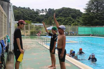 自由形やバタ足、水中かけっこなどを、赤白で競い合いました。