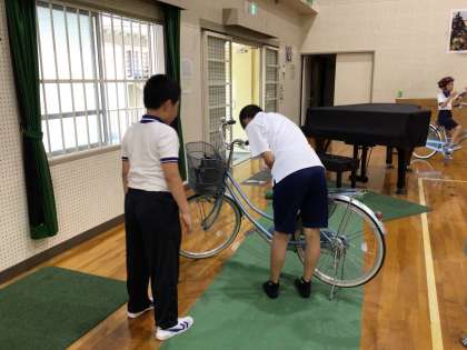 大畑っ子は、先輩の自転車走行の様子を、きらきらと尊敬の眼差しで見つめていました。