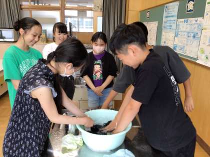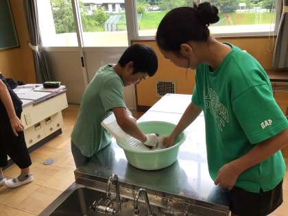 家庭科の授業で、衣服の手入れの仕方を学んでから、自分の靴下を洗濯しました。実際にやってみると、手洗いは意外と簡単で、汚れもよく落ちることに気付きました。乾いてから、取り込むのが楽しみです。いつも洗濯をしてくれる家族に対して、感謝の思いをもつこともできました。