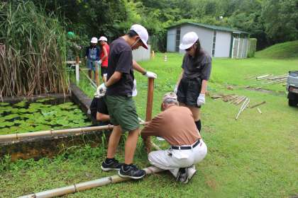 6年生 地域の方々のおかげで、観察池の柵の補修ができました