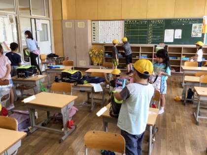 夏休みに入る前に、教室の大掃除を行いました。自分の学習セット(机と椅子)、ロッカーの中を雑巾でふき、その後教室内のあらゆるところを自分たちで考えて掃除しました。教室もぴかぴかになって、気持ちよく夏休みを迎えられます。