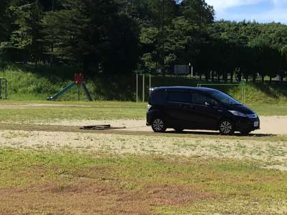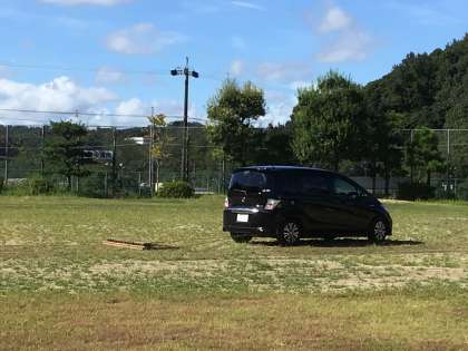 夏休み中の職員による校内整備が続いています。大畑っ子が学校に戻ってきたときに、怪我なく活動できるように運動場の雑草を取り除こうと、地域の方にいただいた器具を乗用車に取り付けて活動しています。夏休み明けも安全、安心第一に心がけます。