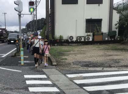 本日より授業が再開し、明るい声で登校する子どもたちの姿が見られました。登校時は、蒸し暑かったため、水分補給をしながら歩く速さも調整していました。