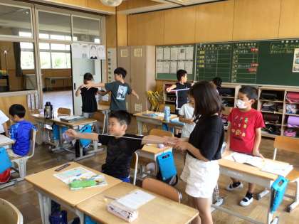 ものさしでは測れない長いものや、丸いものをどうやって測るのかを考えました。その後、実際に巻き尺を使って、体や黒板などを楽しそうに測っていました。巻き尺の使い方も、しっかり覚えることができました。