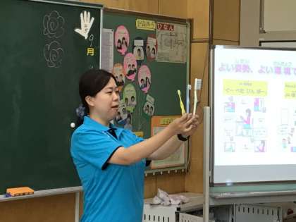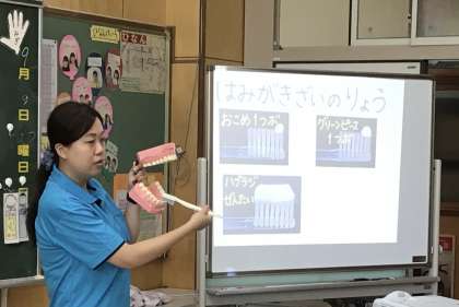 身体計測の前に、養護教諭による保健指導を行いました。夏休み中に取り組んだ姿勢について振り返り、その後歯磨き指導がありました。適切な歯磨き剤の量について学んだり、歯の磨き方について学んだりしました。保護者の皆様、歯磨きセットを準備してくださり、ありがとうございます。今後も大畑っ子が健康に過ごせるように、さまざまな活動を行っていきます。