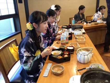 6年生 修学旅行 1日目 昼食 公開日 2024/09/18 更新日 2024/09/18 各学年から 「おかべ家」で、昼食を食べました。 伝統的な京都の食文化を味わうことができました。 田楽や湯豆腐など、「ほんまもん」の味は、思い出になりそうです。