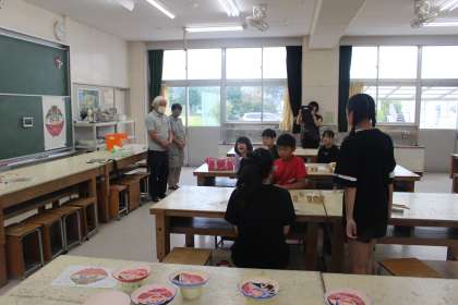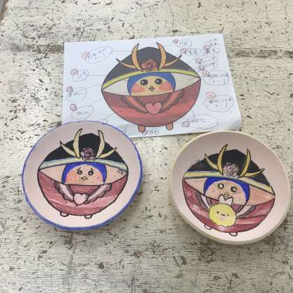 6年生 陶芸教室「ばたっぴぃのお皿を作ろう」絵付け体験2