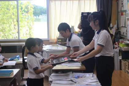 大畑っ子の皆さんが、修学旅行を終えた6年生に、教室の飾りつけや黒板メッセージと書いてくれました。そのお礼を込めて、鹿の折り紙とメッセージを渡しました。鹿の折り紙は奈良のホテルの方に教えていただいたものです。どの学年もとっても喜んでくれて、教室に飾ってくれました。