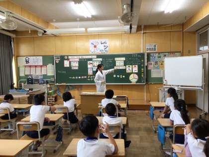 栄養教諭の方に来ていただき、「3つのグループの食べ物をバランスよく食べよう」をめあてに、食に関する指導を行いました。