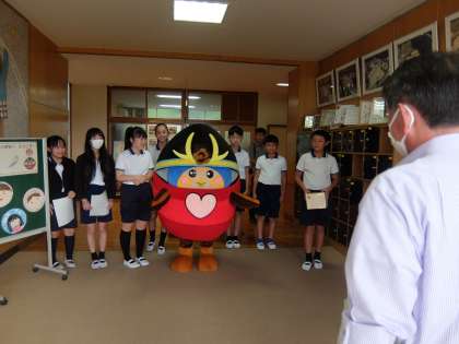 大畑っ子の頑張りを見に、豊田市の教育長が来校されました。大畑っ子は、素直で、子どもらしい子が多く、授業の中でも一生懸命取り組んでいるとたくさん褒めていただきました。また、校内には、大畑小学校マスコットキャラクター「ばたっぴぃ」の顔はめパネル、大谷翔平選手のグローブ貸し出し表、遠足に向けての双六など、子どもたちがわくわくして、楽しむことができるような工夫があると言っていただけました。