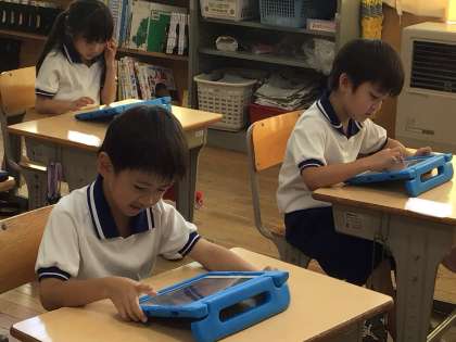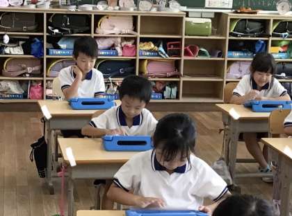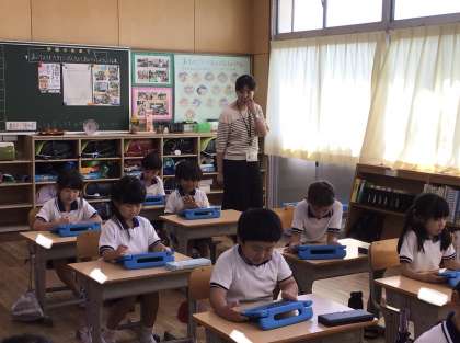 ICT支援員の先生が来校し、学習用タブレットを使って、プログラミングなどの学習を行いました。1年生は、プログラミングの初歩的な活動を行いました。自分で設定した通りに、キャラクターが動くと嬉しくて歓声を上げていました。プログラミング学習は、先のことまで考えて、どのように設定したり、流れを考えたらよいのかを考える力がつきます。週末の学習用タブレット持ち帰りのときに、ご家庭でもプログラミングアプリに触れられるといいです。