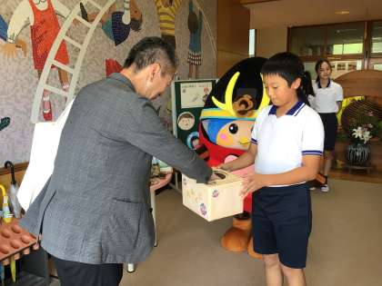 ジブリパーク運営本部の方が、大畑っ子のなかよし遠足のために、資料を届けに来てくださいました。