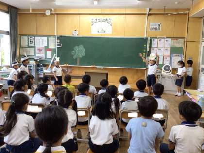 2年生から招待状を受け取り、1時間目に「ニャーゴ」の音読発表会に行きました。2年生は、大きな声で堂々と発表していました。仲間同士で協力して、声を掛け合って練習してきたことがよく分かる発表会でした。1年生の子どもたちは、身を乗り出して、聞き入っていました。終わった後には、「2年生、上手だった」「大きな声で発表していた」「1年生の音読発表会も2年生に聞いてほしい」などと感想を言っていました。