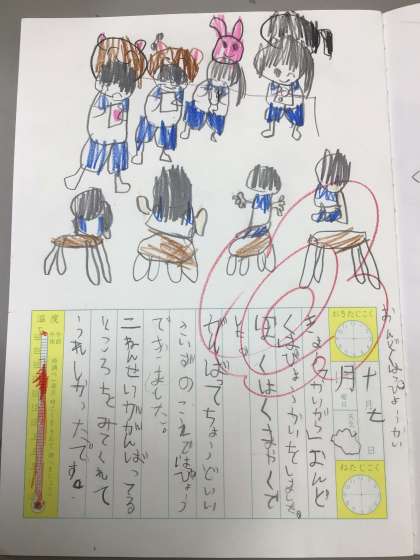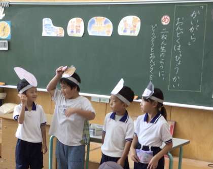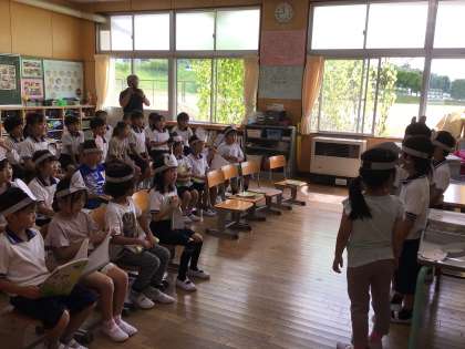 「かいがら」の音読発表会を行いました。2年生が聞きに来てくれて、最初は緊張気味だった1年生も、練習の成果を発揮し、それぞれの役割を果たしていました。終わった後に2年生が「大きな声で言えていた」「協力して頑張っていた」などと感想を述べていて、1年生はとても嬉しそうでした。