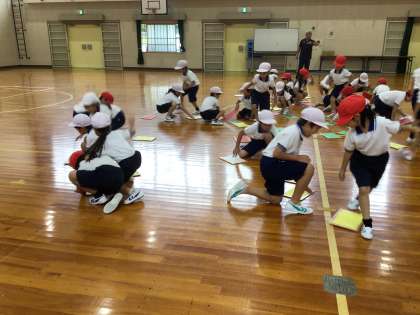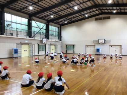 あいにくの雨だったので、体育館で練習を行いました。ダンスの細かい動きを確認したり、オセロカード取りを行ったり、全校綱引きの並び順になったりしました。練習を重ねているうちに、1、2年生のダンスがさらに上手になり、オセロカード取りのときの動きも素早くなっています。本番まで残り約1週間です。体調にはくれぐれも気を付けて、本番を迎えたいと思います。