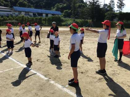 気持ちのよい秋晴れの中、全校で大畑フェスティバルのリハーサルをしました。並ぶときには、低学年の子に優しく声を掛ける高学年の子がいたり、競技の練習でチームの仲間を大きな声で応援する子もいたりと、みんなで協力して大畑フェスティバルを作り上げようとする姿が多く見られました。本番まで、あと1週間です。仲良しパワーで一生懸命練習に取り組む大畑っ子に、応援をお願いします。