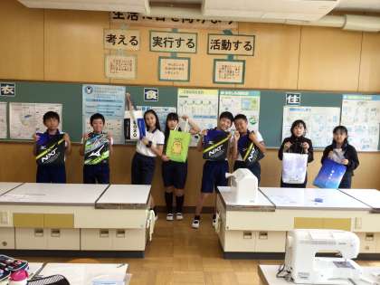 「思いを形にして生活を豊かに」の学習では、トートバッグをミシンを使って作りました。安全に作業をするために気を付けることを考えたり、計画通りに作れるように縫い始めの位置を仲間と確認したりしながら、一生懸命取り組んでいました。どの子も、お気に入りのトートバッグを完成することができました!