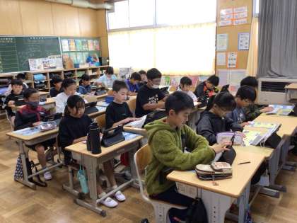 5年生は社会科で、「自動車をつくる工業」について学習しています。今日は、トヨタ自動車の方にオンラインで工場を見学させていただいたり、クイズを交えながら自動車工業について説明していただいたり、工場で働く人のインタビューを聞いたりしました。児童たちは見たり聞いたりしたことをメモしながら、多くのことを知ることができました。次回からの社会科では、「自動車工業の魅力」についてチラシを作成していきます。