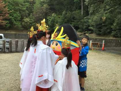 地域に大畑小学校マスコットキャラクター「ばたっぴぃ」が現れました。地域の方々から、温かく迎えていただきました。ばたっぴぃも学校とは違う大畑っ子の頑張りを見ることができて、嬉しそうでした。