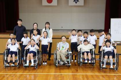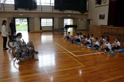 総合的な学習の時間の活動で、3回目の福祉実践教室を行いました。今回の活動では、講師の方をお招きして、車いすのことについてお話していただきました。また、2人1組になって、学校の中に準備したコースを車いすに実際に乗って進んでみました。講師の方のお話や体験から「小さな段差でも車いすを押すのに、とても力が必要だった」「はじめは楽しいのかなと思ったけど、実際に乗ってみると段差を後ろ向きで降りるのが怖かった」「車いすの方でも、苦手なことがあるだけで私たちの生活と変わらないことが多かった」などの感想がありました。今後も、「ふくし」を実現するために必要なことは何かを探っていきながら学習を進めていきます。
