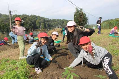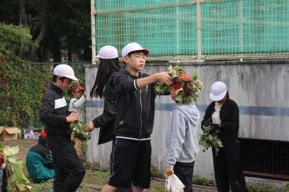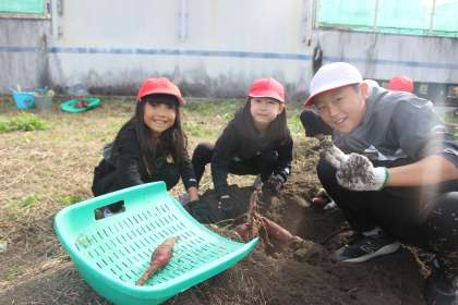 1年生とサツマイモ掘りを行いました。サツマイモがなかなか見つからなくて、困っているペアもありましたが、1年生と一緒によい時間を過ごすことができました。活動のときには、1年生に楽しんでもらおうと「こっちに、いもがありそうだよ!一緒に掘ってみよう!」と呼びかけていました。その後、サツマイモのつるを使ってリースを作りました。6年生が、1年生のために心を込めてリースを作っていました。それを見ている1年生の子も、とってもうれしそうで、ほほえましい光景でした。