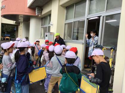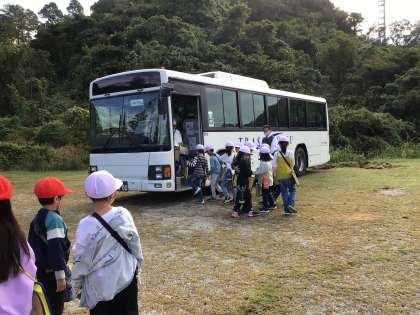 豊田市自然観察の森に向かって出発しました。バスの運転手さんにも挨拶して、みんなにこにこ顔です。