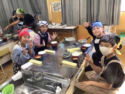 5年生 調理実習 公開日 2024/11/08 更新日 2024/11/08 各学年から 5年生は、6日に調理実習をしました。調理実習では、ご飯と味噌汁を班の仲間と協力しながら作りました。振り返りでは、「協力して美味しいご飯をつくることができた」「家でも作ってみたいな」などど記入していました。