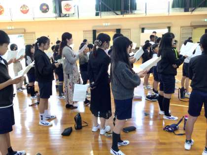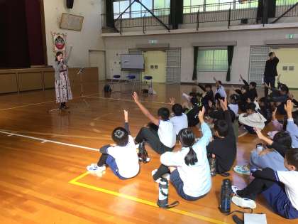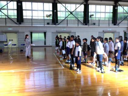 4・5・6年生 声楽プログラム 公開日 2024/11/08 更新日 2024/11/08 学校行事 豊田オペラグルッポの方に来ていただき、合唱指導をしていただきました。高学年は、今月の歌「スマイルアゲイン」で二部合唱に挑戦しました。姿勢の確認、発声の仕方、楽譜から歌い方を考える方法など、たくさん教えていただいた後には、きれいなハーモニーが体育館中に響き渡りました。これからも学校にきれいな歌声があふれることを楽しみにしています。