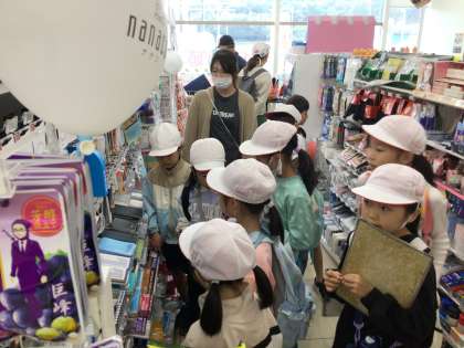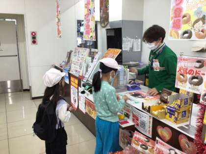 2年生 町探検(秋)その2 公開日 2024/11/15 更新日 2024/11/15 各学年から 大畑駐在所の次は、およそ2kmの距離を歩いて篠原町のセブンイレブンへ行きました。最初に店長さんに質問して、答えてもらった後に店内を自由に見て回りました。たくさんの種類の商品があることに気付きました。また、文房具や日用品の買い物体験もしました。おすすめのドーナツが1日に100個も売れるとは驚きでした。