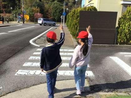 学んだ基礎知識を生かして、実際に横断歩道や歩道を歩きました。見通しが悪いところでは、どのように歩いたらいいかを考えながら、行動しました。これからも交通ルールを守って、安全に生活していきます。