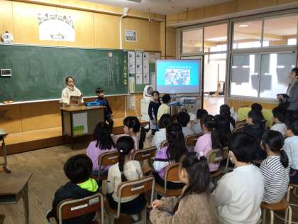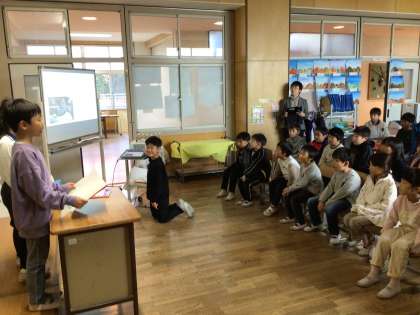 国語科の「町で見つけたことを話そう」の単元のまとめとして、生活科で町探検に行ったことを1年生に聞いてもらいました。大畑駐在所、セブンイレブン、日本一たい焼きの3か所について、班ごとに見てきたことや質問したことなどを発表しました。家でもたくさん練習したので上手に言うことができました。また、質問が出されたら、それに答えることもできました。1年生には来年度の参考にしてもらえるとうれしいです。