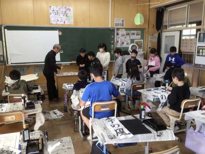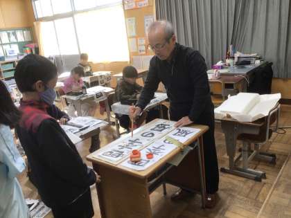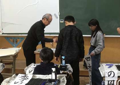 今回は、前回教えていただいた注意点に気を付けて書き初めの練習に取り組みました。書き終わった子から、個別に直しをしていただくだけでなく、「ここが上手になったよ」と、励ましの言葉をいただきました。その言葉で、子どもたちは自信を付けているようでした。