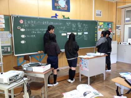 社会科「明治の国づくりを進めた人々」では、明治維新の5つの改革の中で、富国強兵にとってどれが重要なのか考えました。自分で集めた資料を使って班の友達に説明したり、みんなでどれが重要かを話し合ったりしました。「資料集のこのページに書いてあるのですが」と根拠を基に説明する姿に、さすが6年生だと感心しました。参観した教員も一緒になって考える機会となりました。