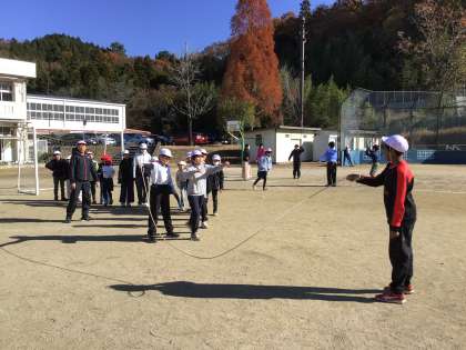 なかよし班で、8の字跳びの練習を始めました。大畑っ子のみんなが、すぐに活動を始められるように、6年生が朝から運動場の準備をしていました。「はいっ、はいっ」と声をかけ、縄に入るタイミングを教える上級生のおかげで、下級生も挑戦しようという気持ちになっていました。1月に行われる縄跳び大会に向けて、今後もなかよし班で練習して行く予定です。