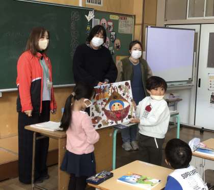とても素敵な作品なので、大畑小学校だより(号外)として全校に配布しました。実物は、1年生教室にありますので、ご来校の際は、ぜひお立ち寄りになり、質感等を楽しんでいただけたらと思います。