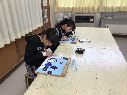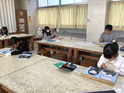 4年生 図画工作科 版画を掘っています