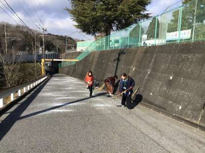 雪対策のため、校務支援員と公務手が融雪剤をまきました。大畑小学校へのアプローチは坂道なので、ご来校の際は、くれぐれもお気をつけください。