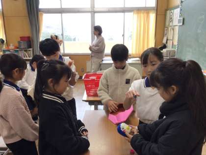 あみぐるみの「ばたっぴぃ」にかぶとやお椀を画用紙で作ってくれた子もいます。