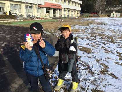 下校前に、あみぐるみ「ばたっぴぃ」と写真を撮りました。