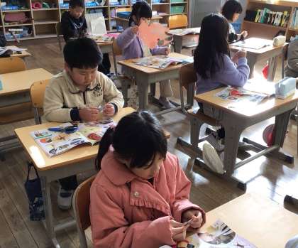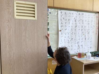 「すきまちゃんのすきなすきま」で作品作りをしました。オリジナルのすきまちゃんを作って、教室にあるさまざまなすきまを探しました。「こんなところにもすきまがある!」「ぼくのすきまちゃんがかくれんぼしてる」などと言いながら、楽しくすきま探しをしました。その後は、すきまちゃんをモデルに写真をとり、すきまちゃんのつぶやきを書き添えて、発表ノートにまとめました。
